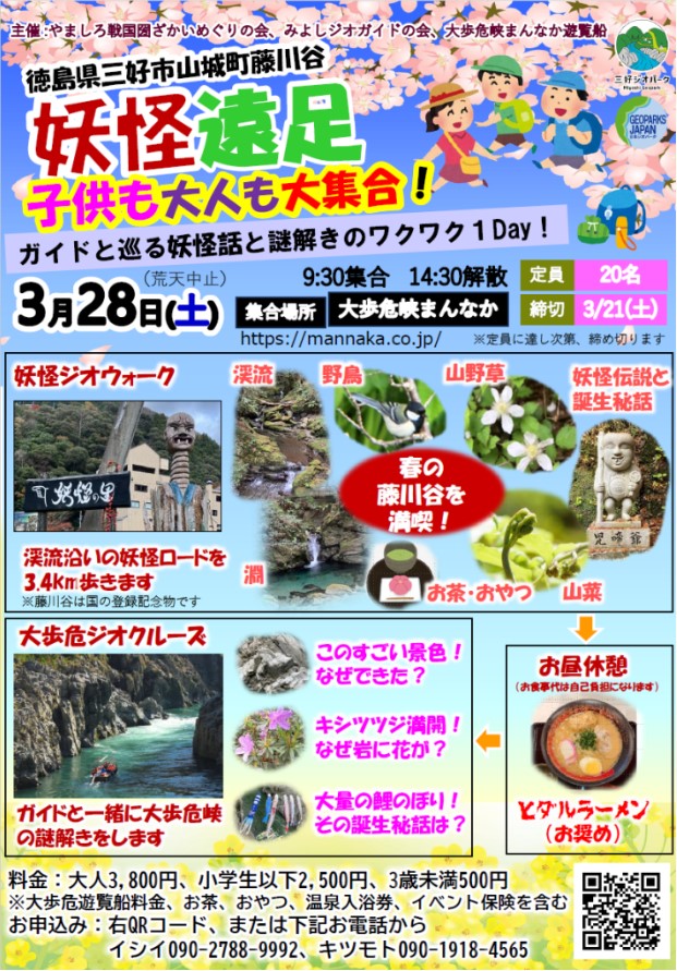 山城町(三好市)の藤川谷と大歩危峡を舞台に、体験型イベント「妖怪遠足」が開催されます。