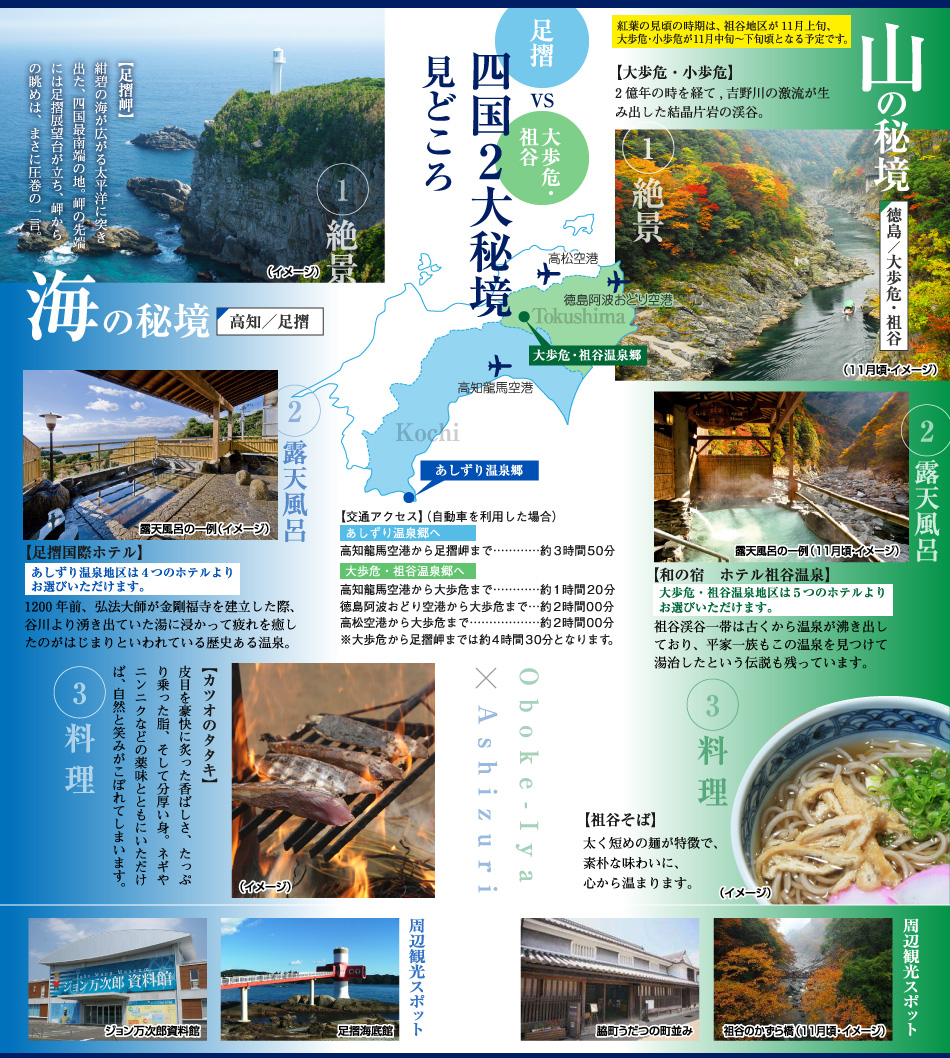秘境対決!<山の秘境VS海の秘境>大歩危祖谷・足摺3日間 を販売開始致します。